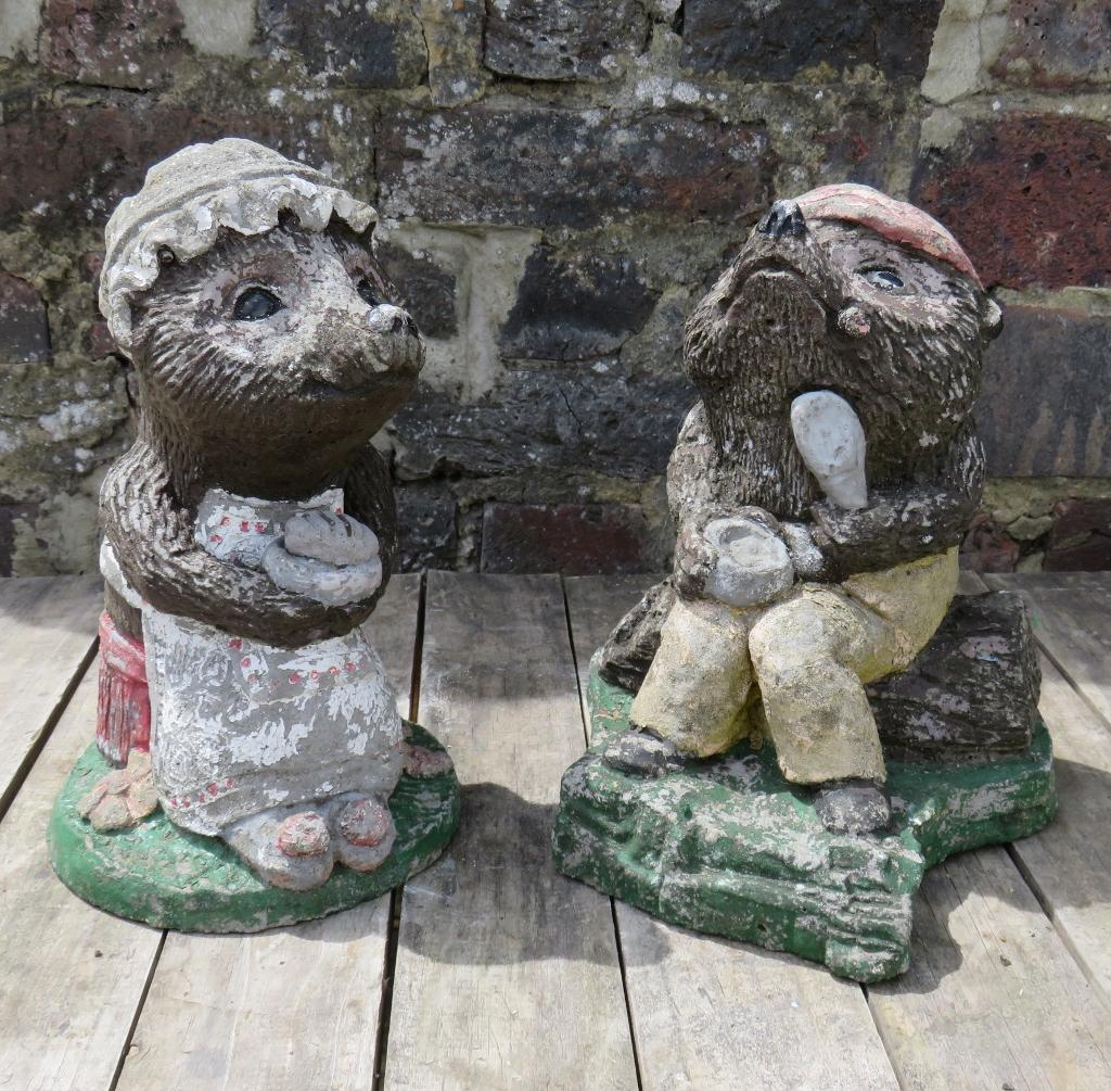 Pair Of Vintage Weathered Garden Hedgehogs