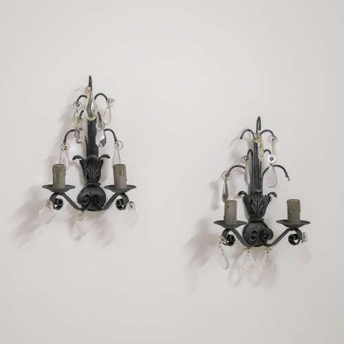 Pair of Wall Lights with Crystal Drops (1 of 9)
