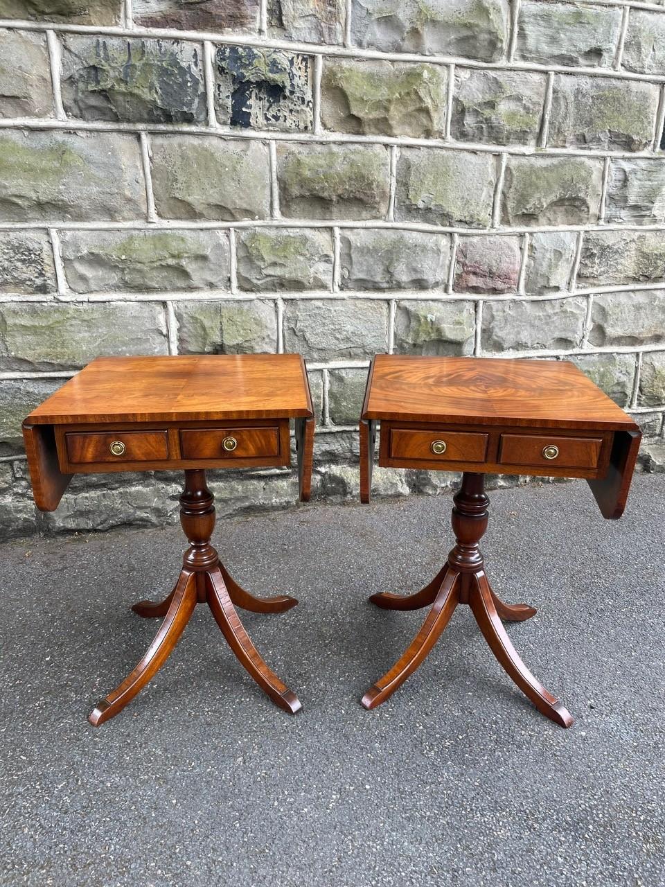 Pair of Walnut 2 Drawer Bedside Lamp Tables