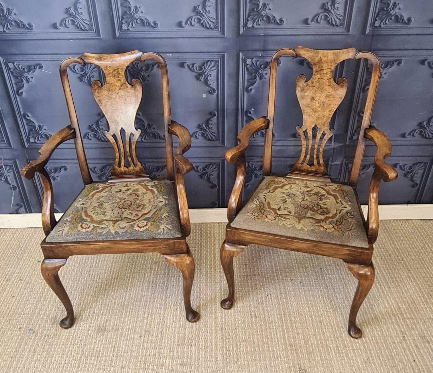 Pair of Walnut Armchairs