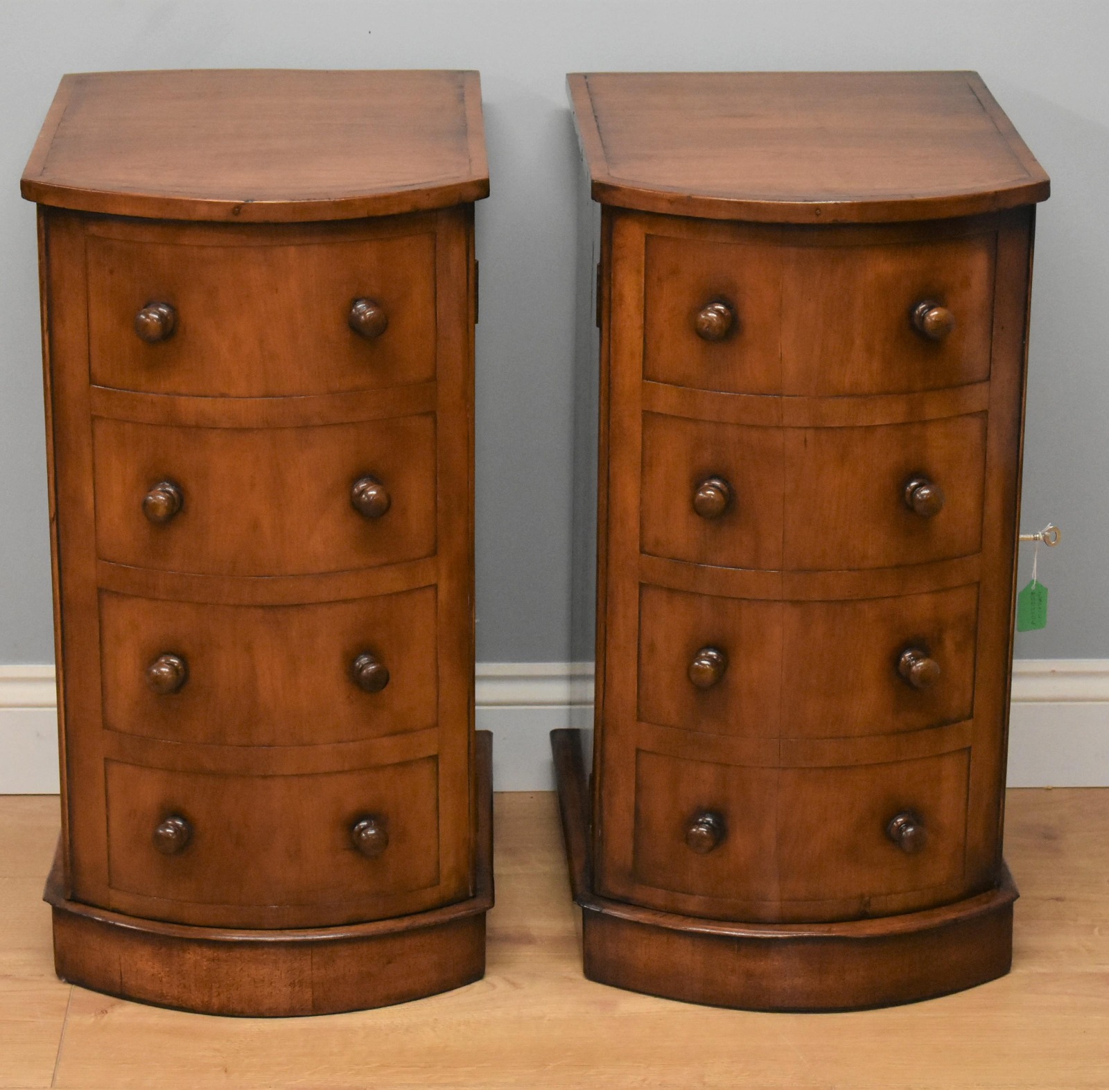 Pair of Walnut Bowfront Bedside Chests