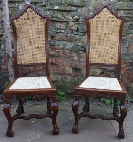 Pair of Walnut Caned Hall Chairs (1 of 4)