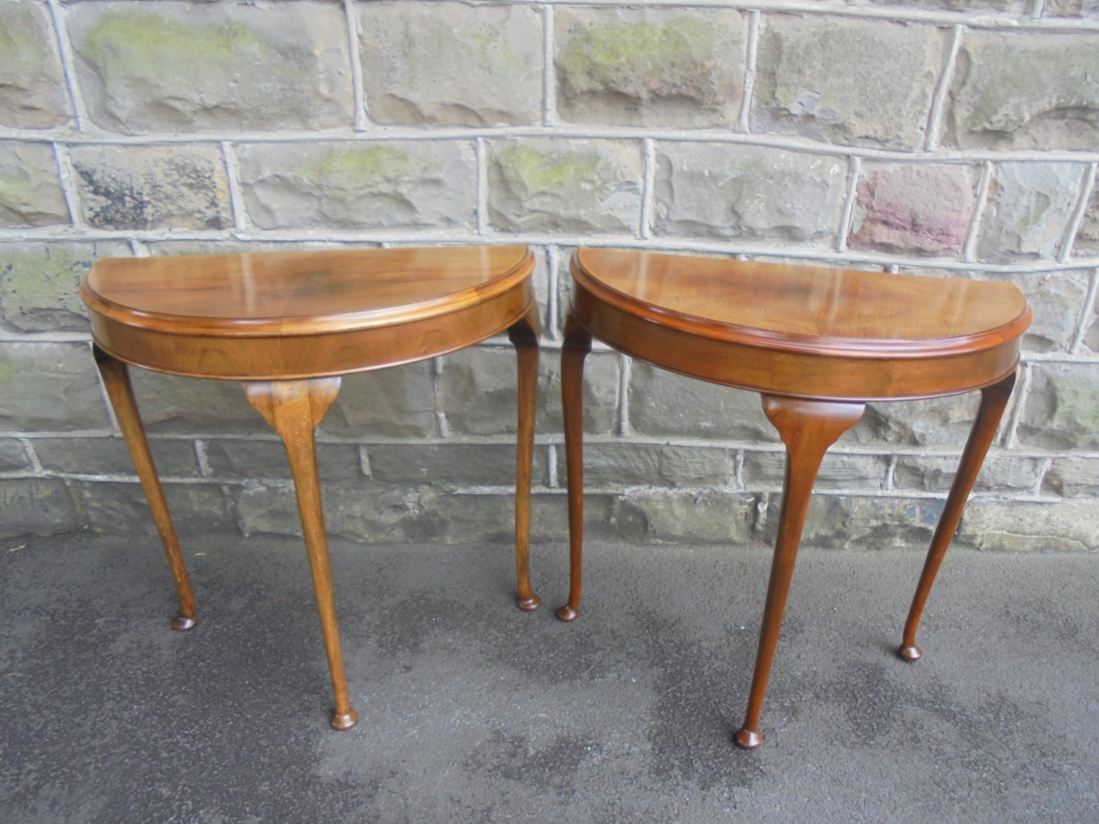 Pair of Walnut Demi Lune Console Tables c.1920