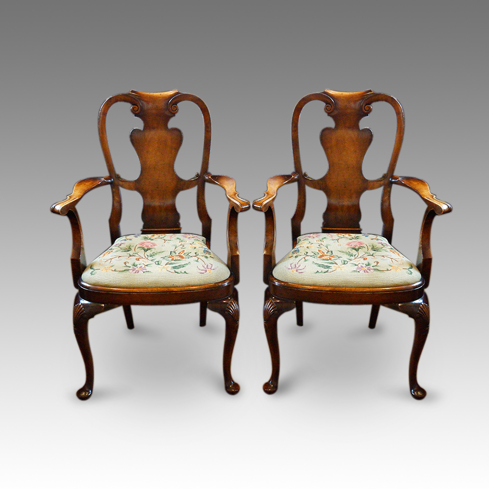 Pair of Walnut George I Style Armchairs C.1910 (1 of 1)