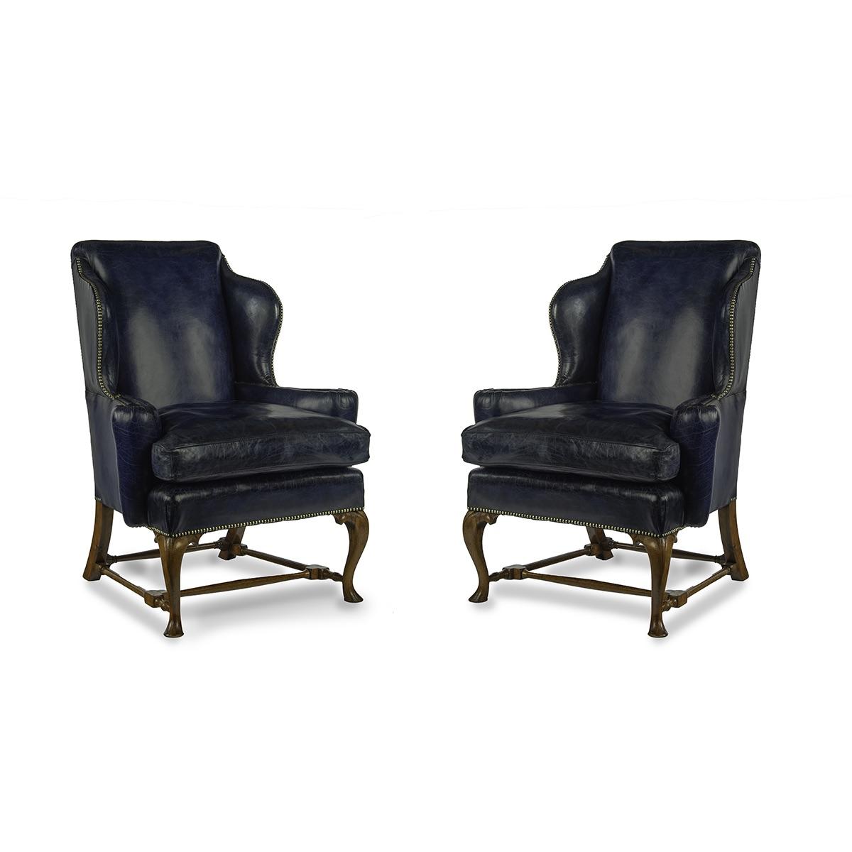 Pair of Walnut Georgian Style Leather Wing Armchairs