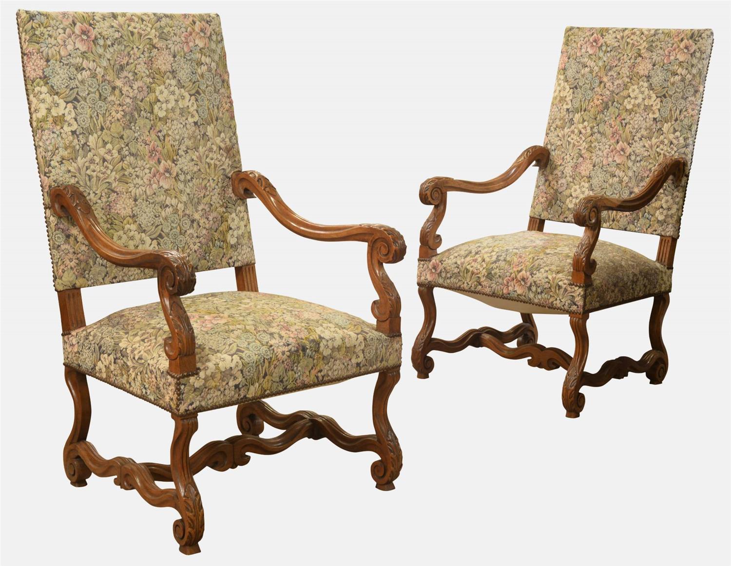 Pair of Walnut Louis XIII Style French Armchairs c.1900 (1 of 1)