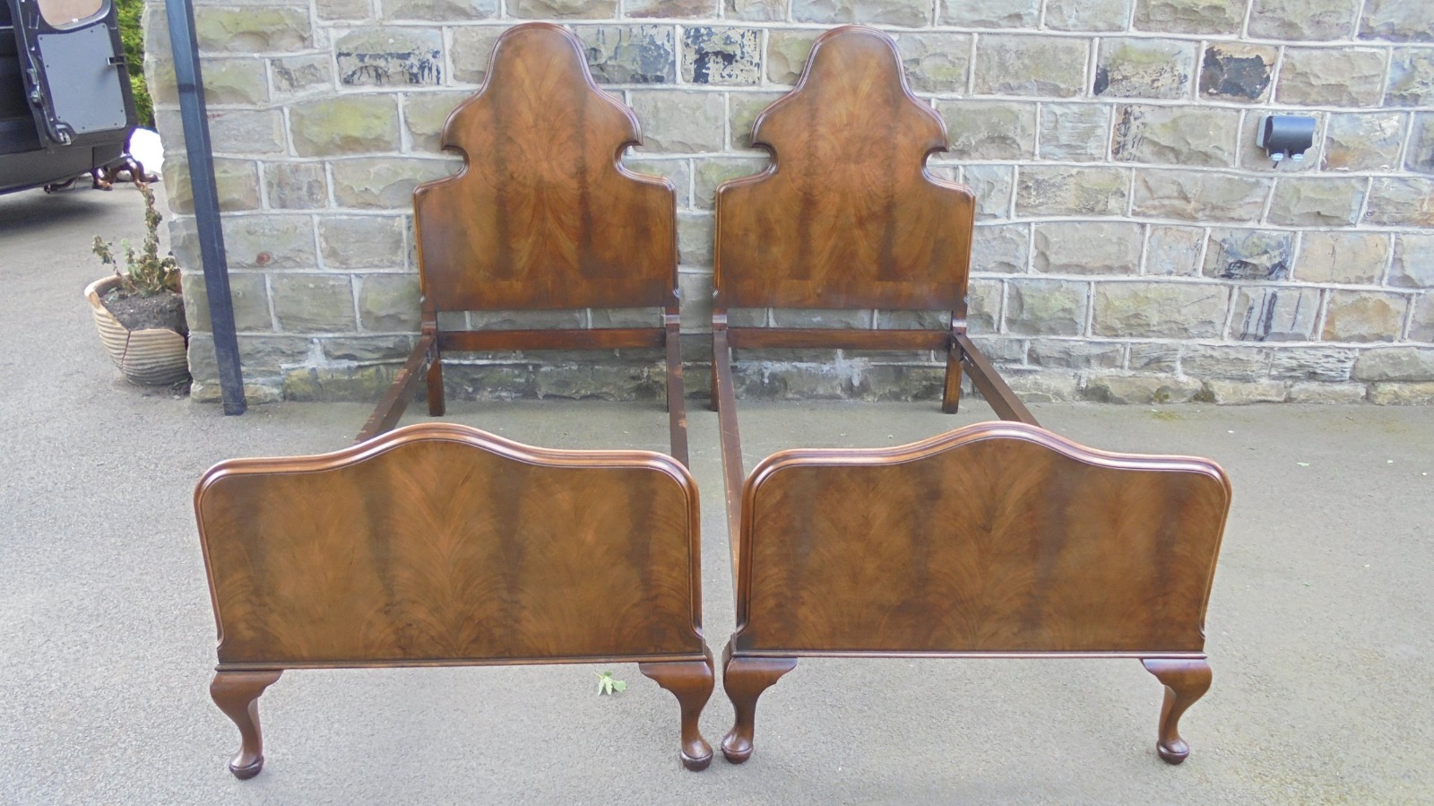 Pair of Walnut Queen Anne Style Single Bed Frames c.1920