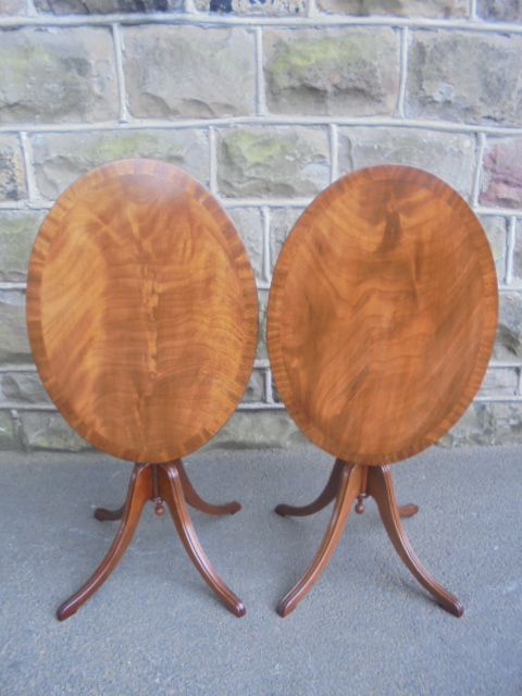 Pair of Walnut Tilt Top Tripod Wine Tables / Lamp Tables c.1920