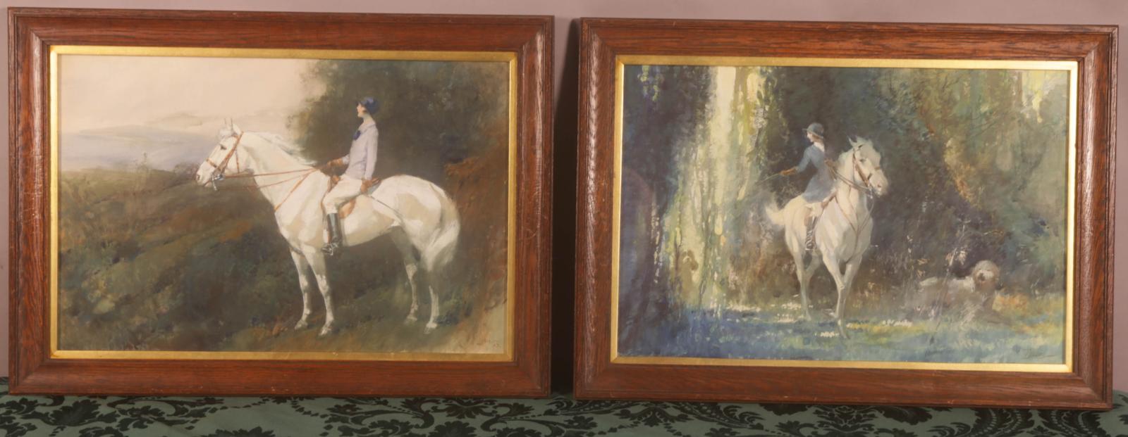 Pair of Watercolours by T P Leddie Equestrian Subject