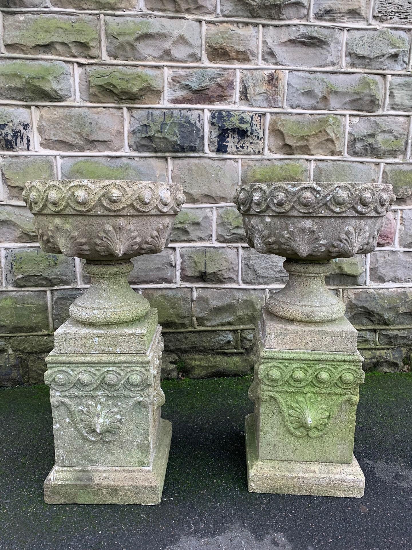 Pair of Weathered Garden Urns