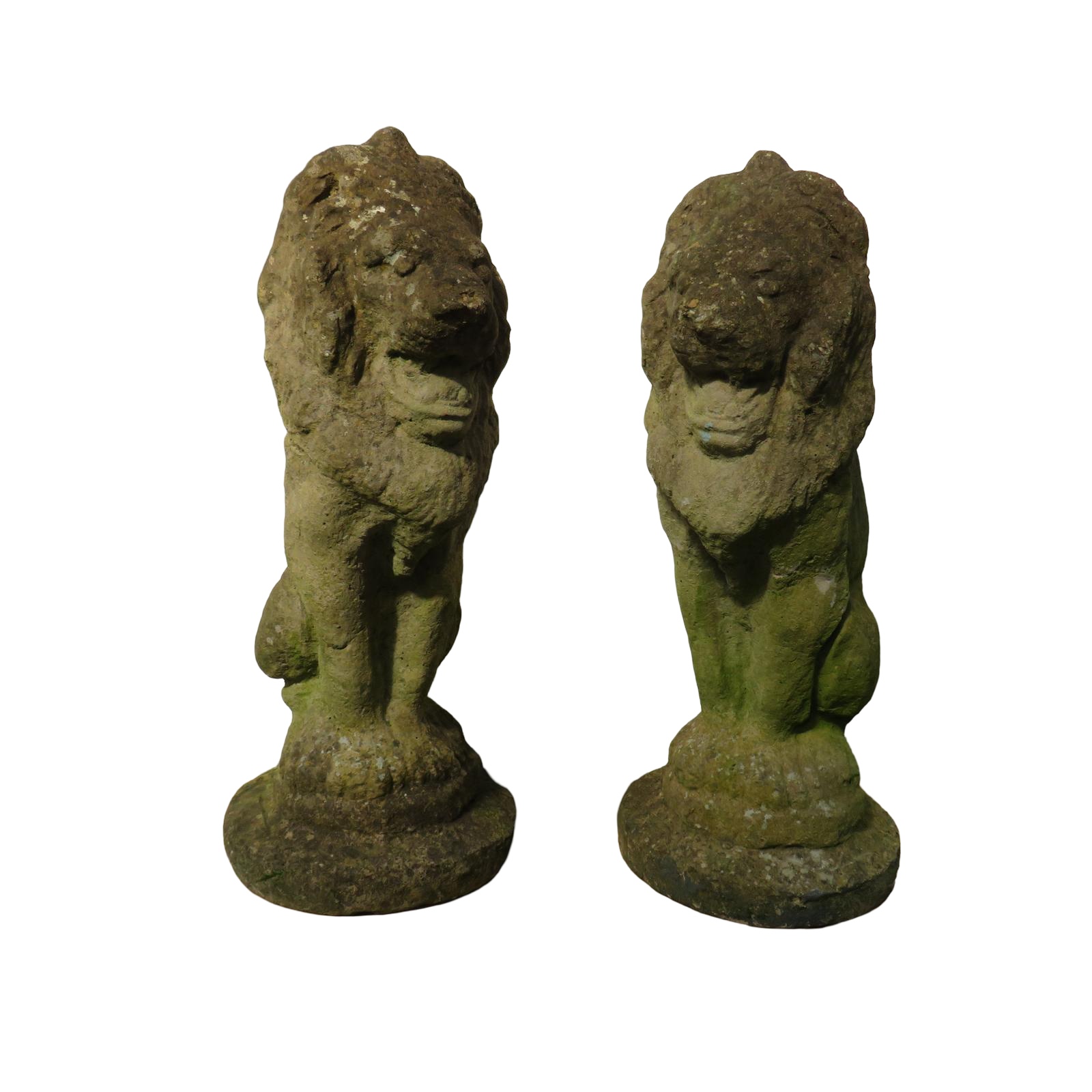 Pair of Weathered Stone Garden Lion Ornaments