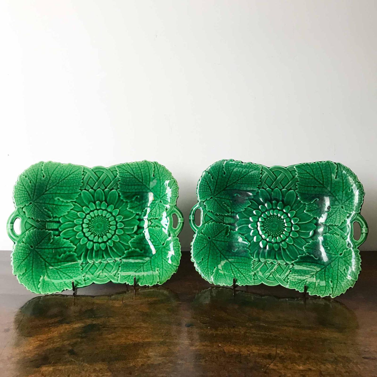 Pair of Wedgwood Green Majolica Sunflower Platters