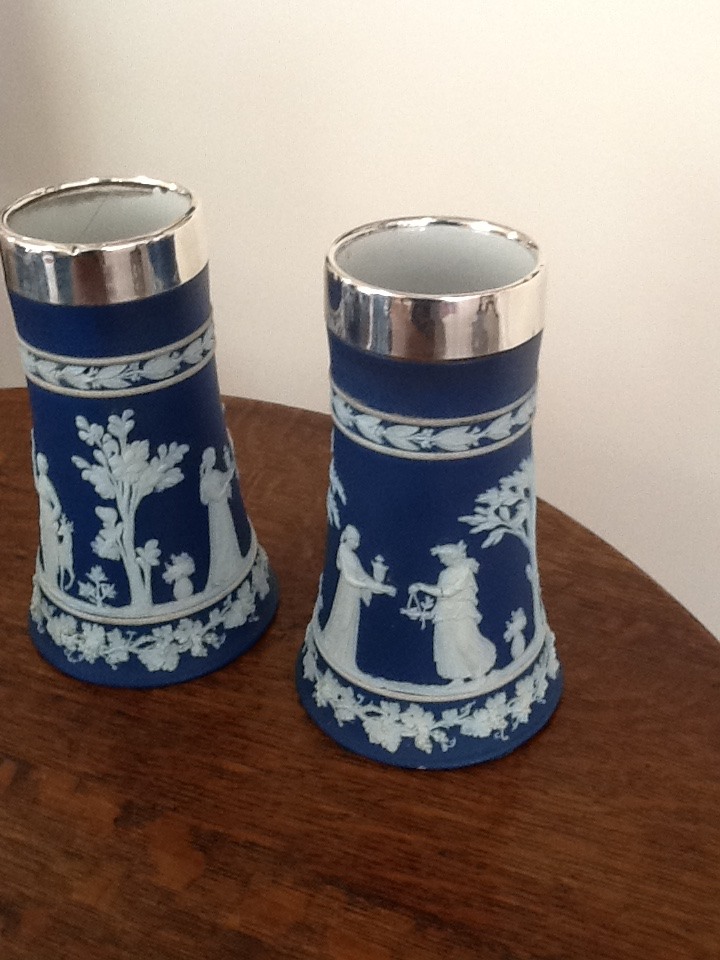 Pair of Wedgwood Silver Rim Spill Vases c.1912