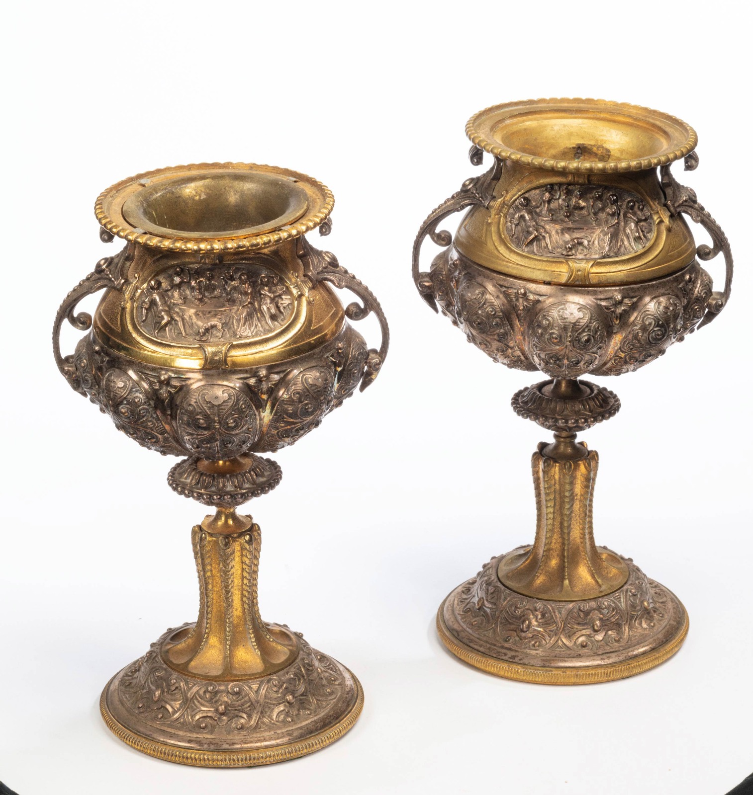Pair of Well-Cast Bronze & Gilt Bronze Vases