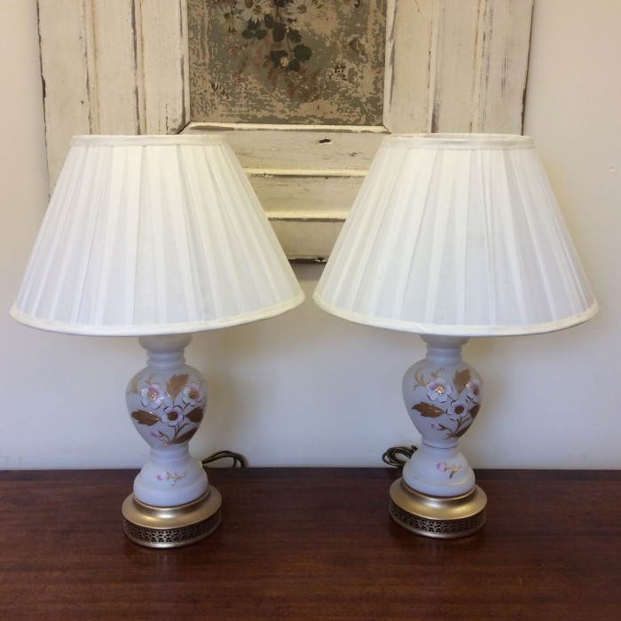 Pair of White & Gold Floral Table Lamps (1 of 5)