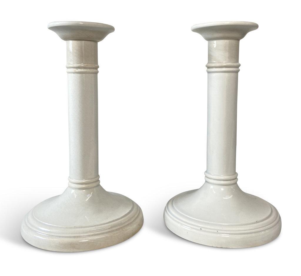 Pair of White Ironstone Candlesticks