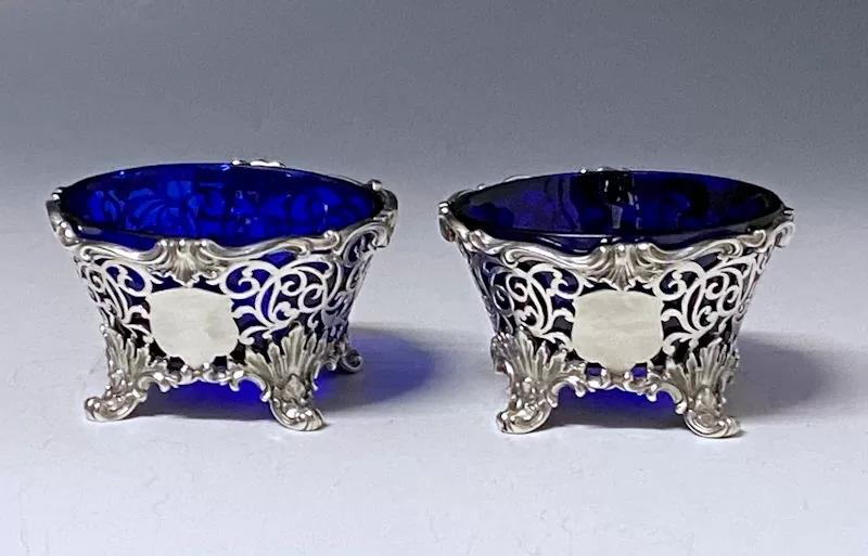 Pair of William IV Antique Silver Salt Cellars Made in 1837