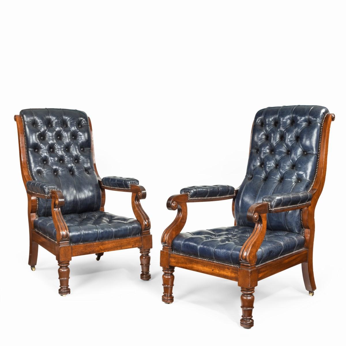 Pair of William IV Mahogany & Leather Upholstered Armchairs