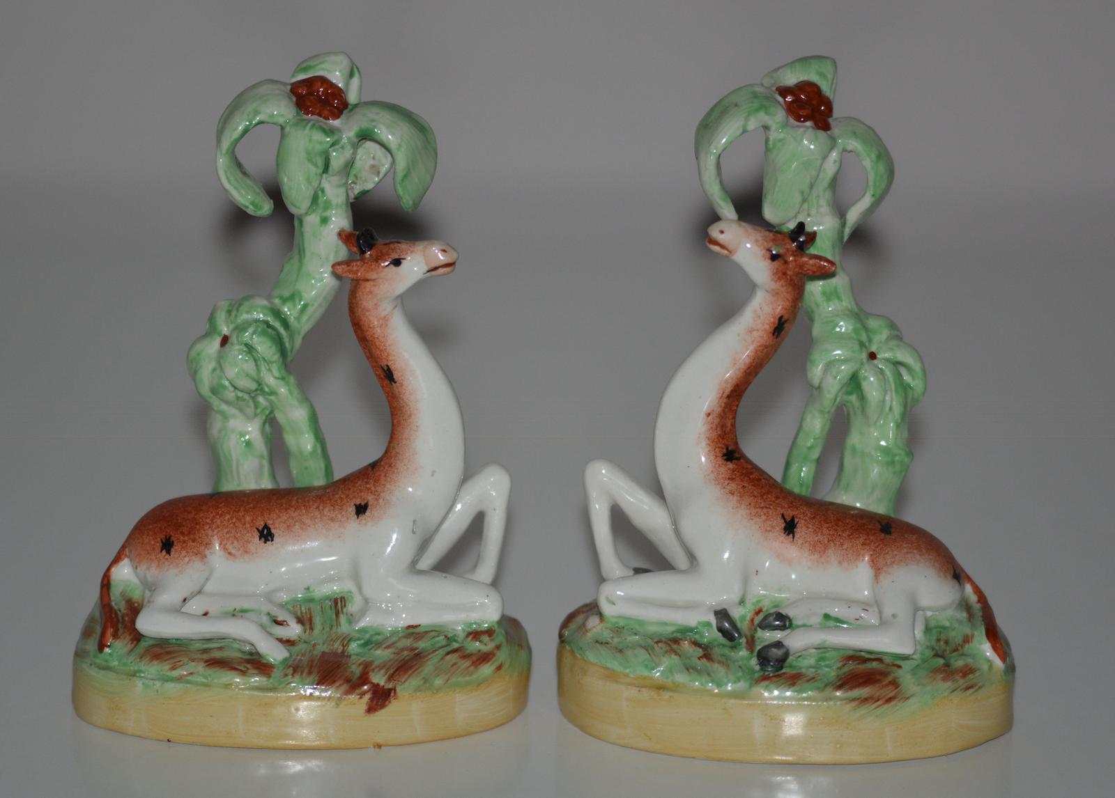 Pair of William Kent Staffordshire Giraffes before Palm Trees c.1900