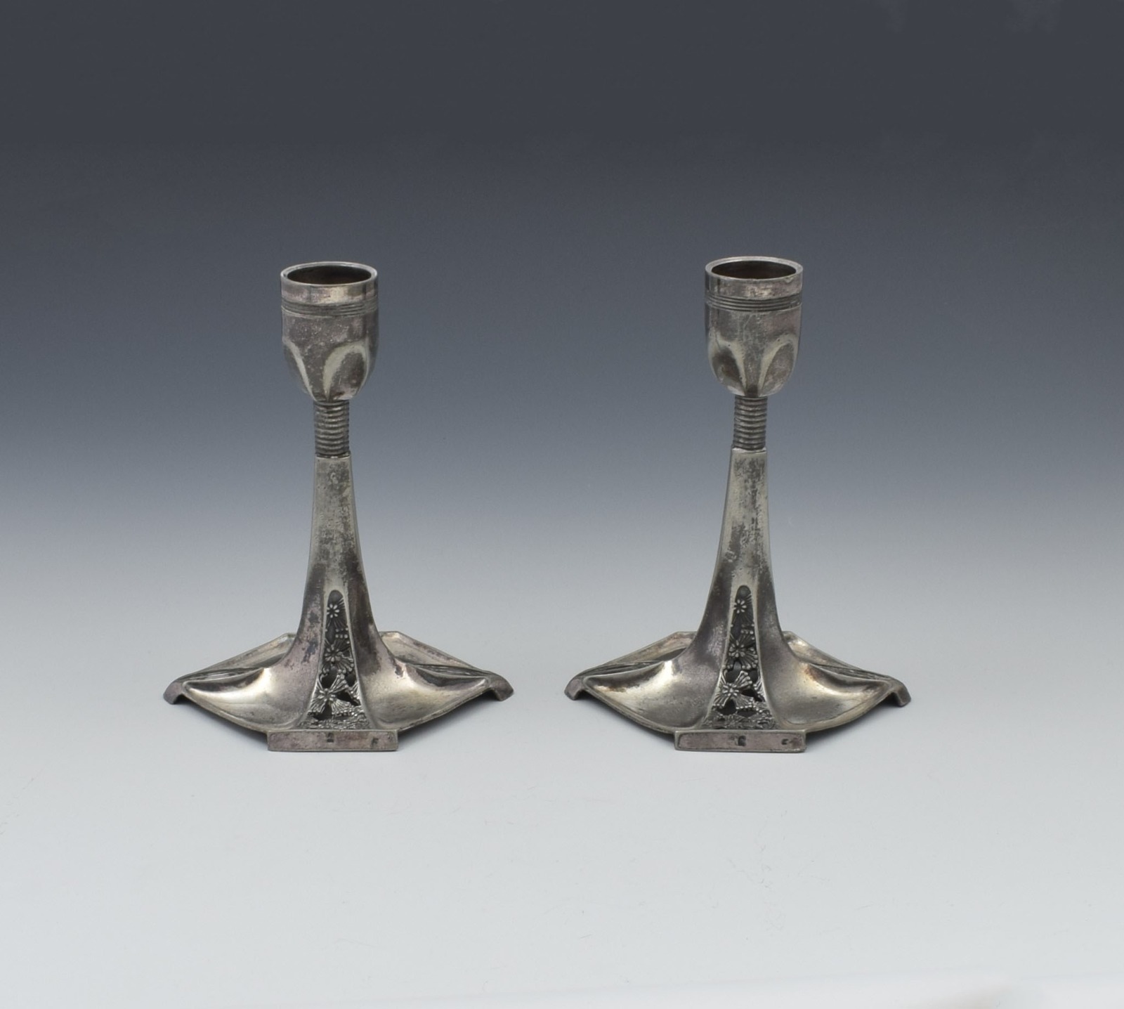 Pair of Wmf Art Nouveau Pewter Candlesticks C.1905