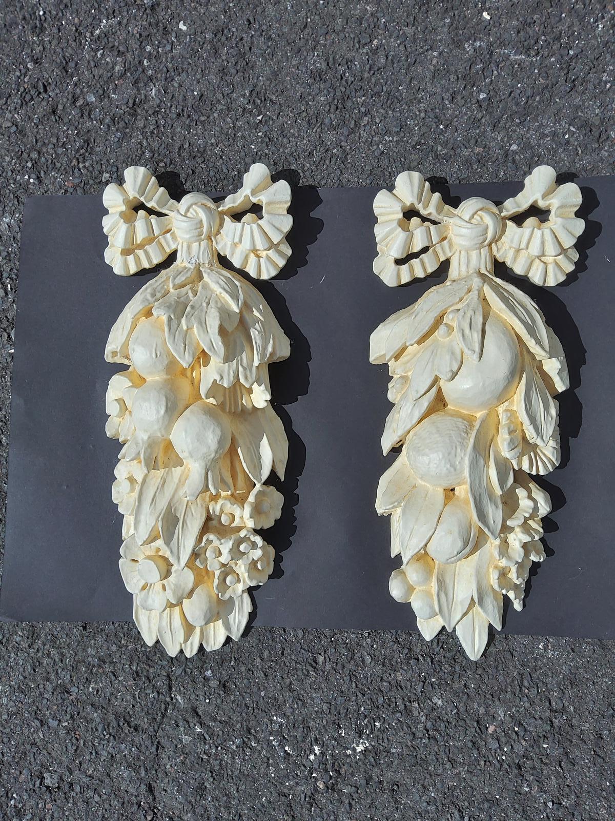 Pair of Wooden Applique Fruit & Flower Panels with Bows