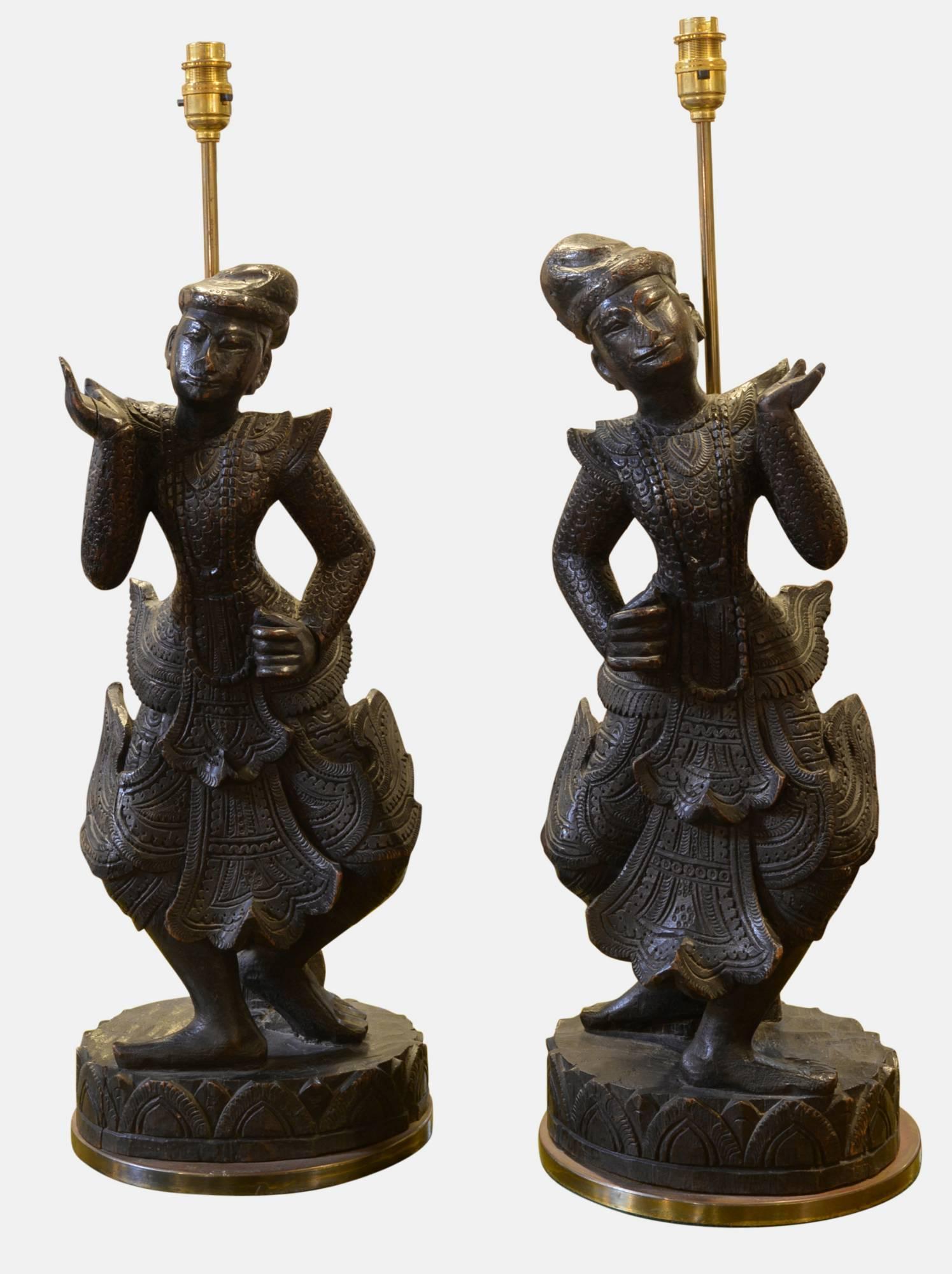 Pair of Wooden Burmese Table Lamps (1 of 1)