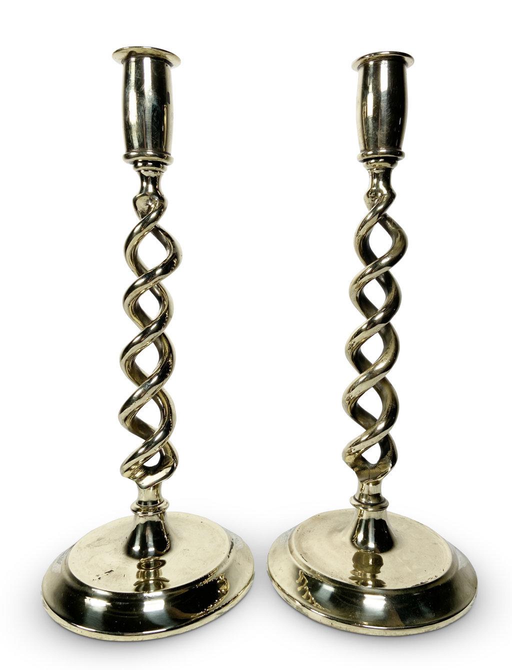 Pair of Wrythen Twist Brass Candlesticks