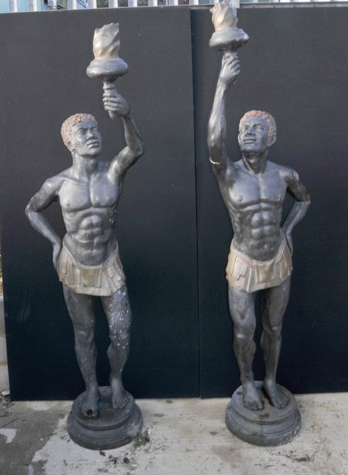 Pair of Xl Italia Bronze Blackamoor Statues Torch Moors Architectural c.1920