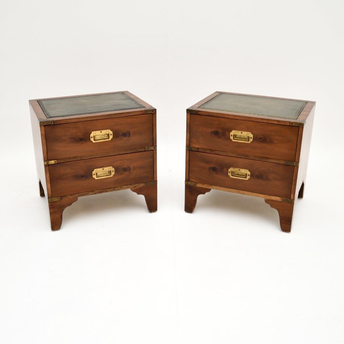 Pair of Yew Wood Military Campaign Style Bedside Chests (1 of 9)