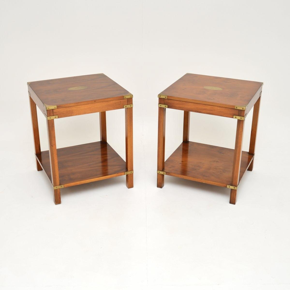 Pair of Yew Wood Military Campaign Style Side Tables (1 of 8)