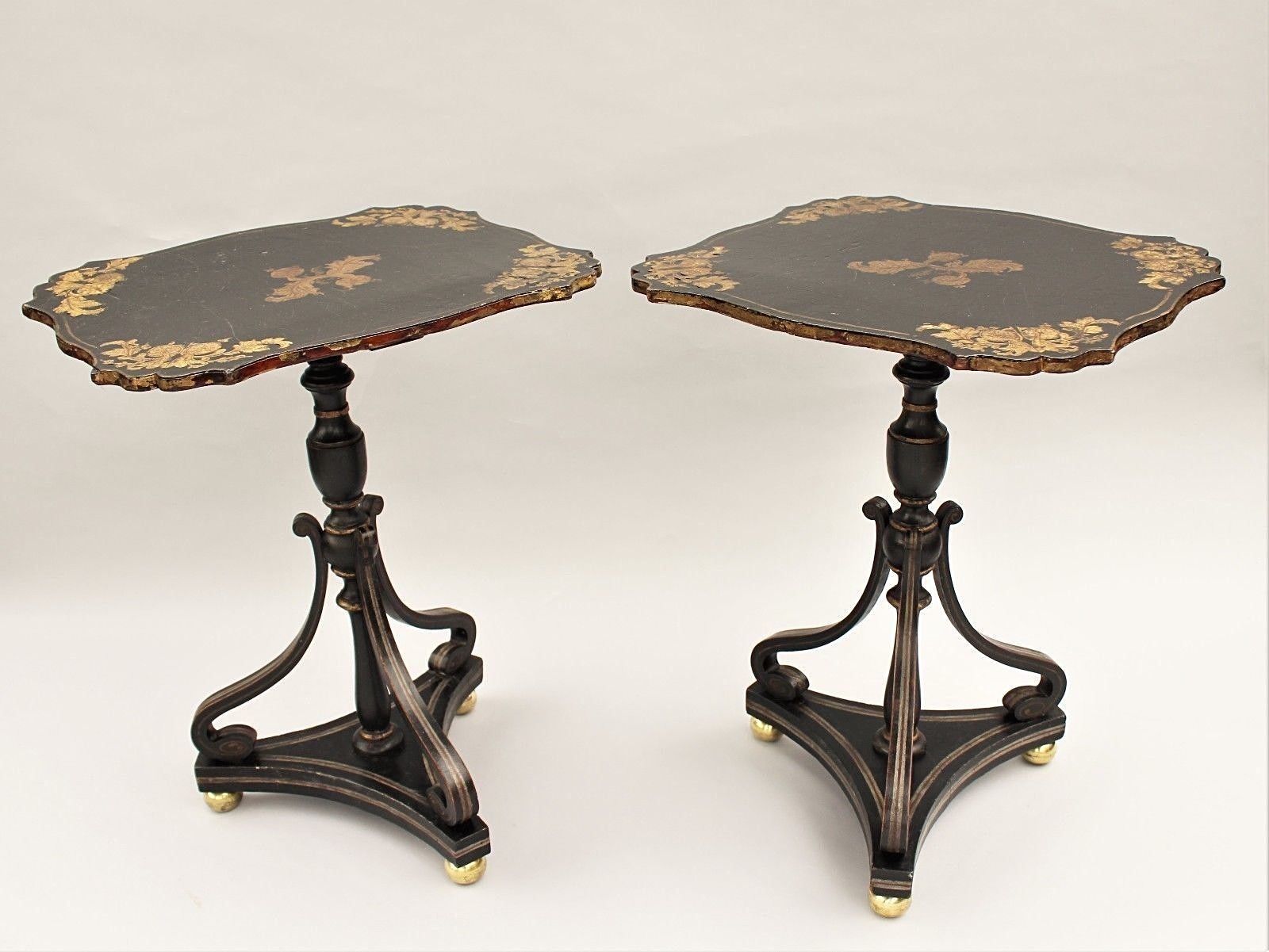 Pair Regency Papier Mache & Parcel Gilt Tables