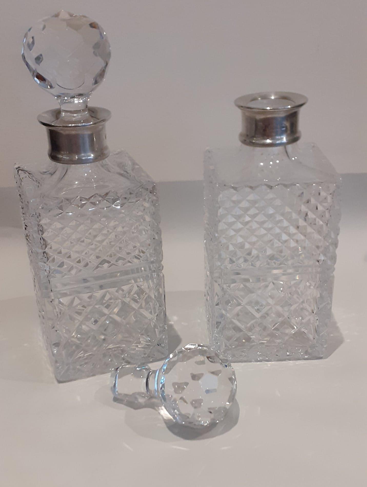 Pair Silver Top Decanters