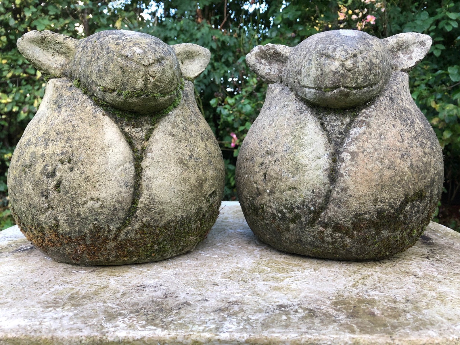 Pair Small Old Welsh Snowdonia Farm Sheep Animal Garden Stone Entrance Gate Statues (1 of 1)