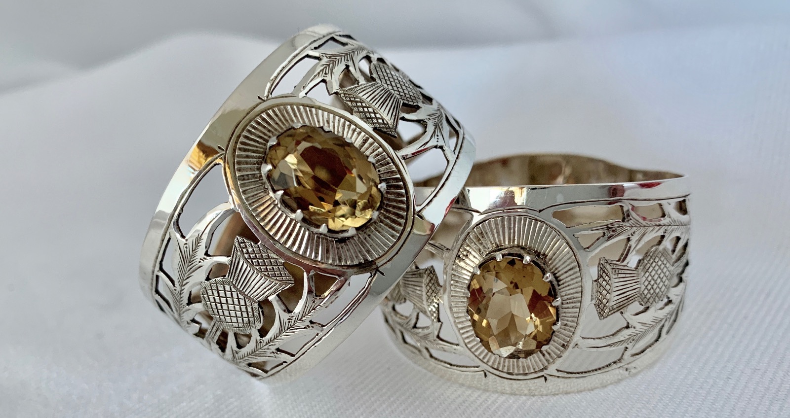 Pair Sterling Silver & Citrine Napkin Rings.