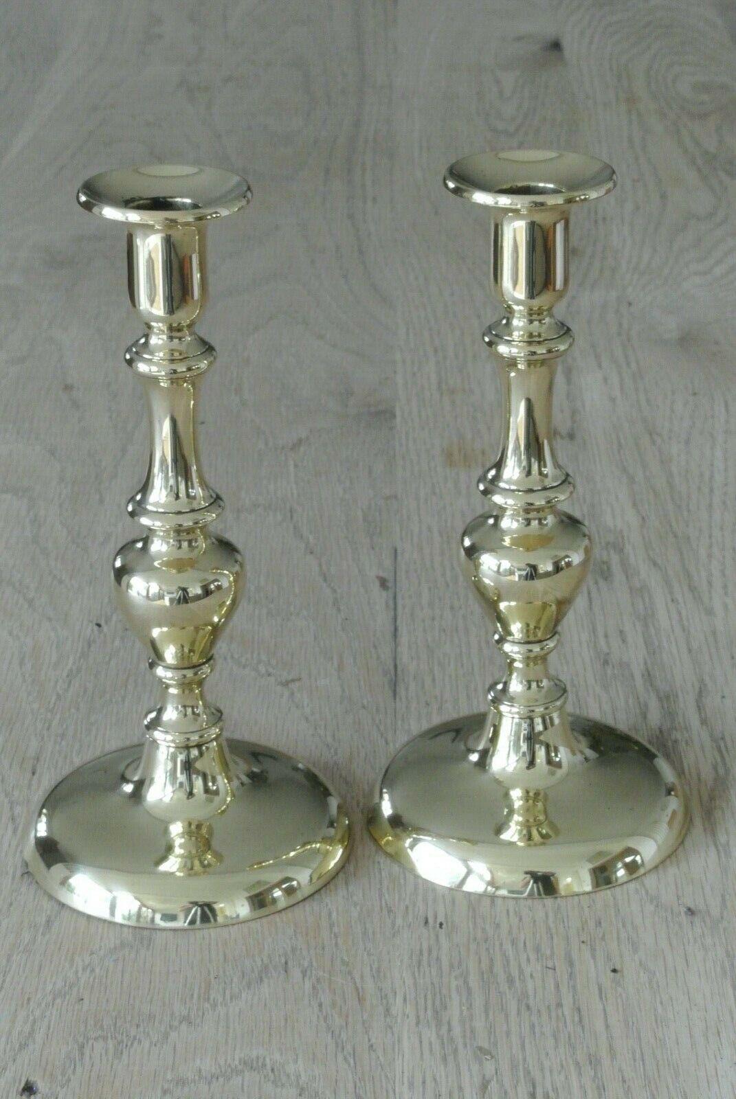 Pair Victorian Brass Candlesticks c.1850-1870 Round Base with Pushers 8.75 Inch