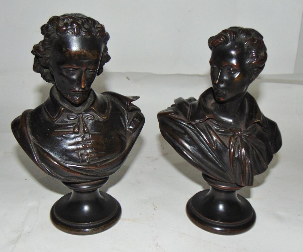 Pair Victorian Bronze Busts - Poets
