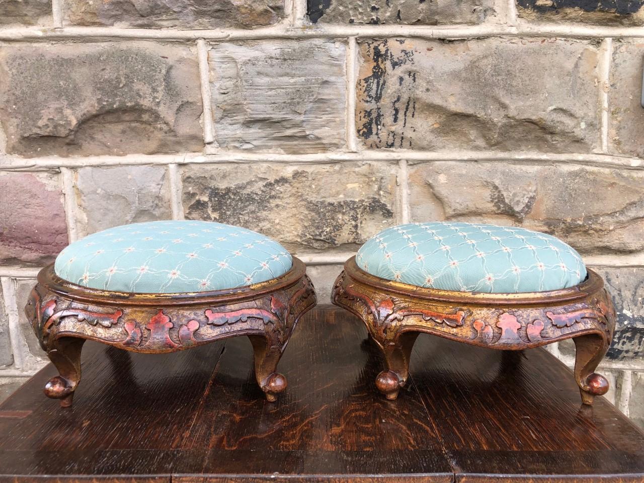 Pair Victorian Carved Gilded Walnut Foot Stools