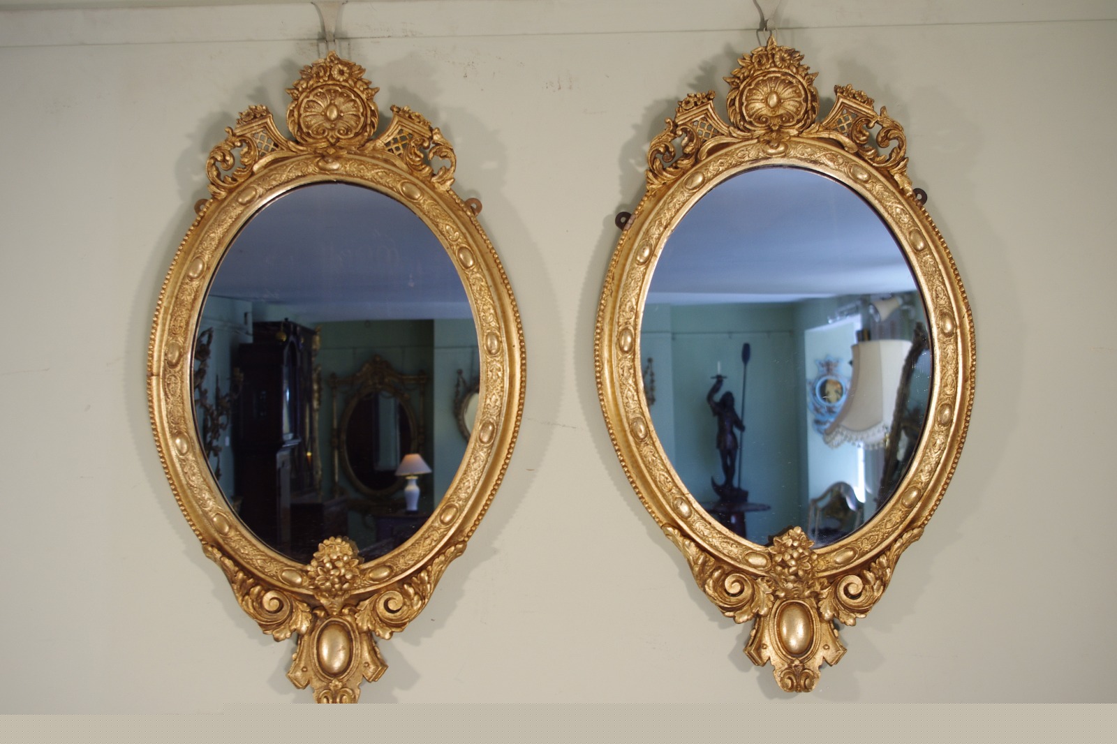 Pair Victorian Oval Gilt Wall Mirrors (1 of 1)