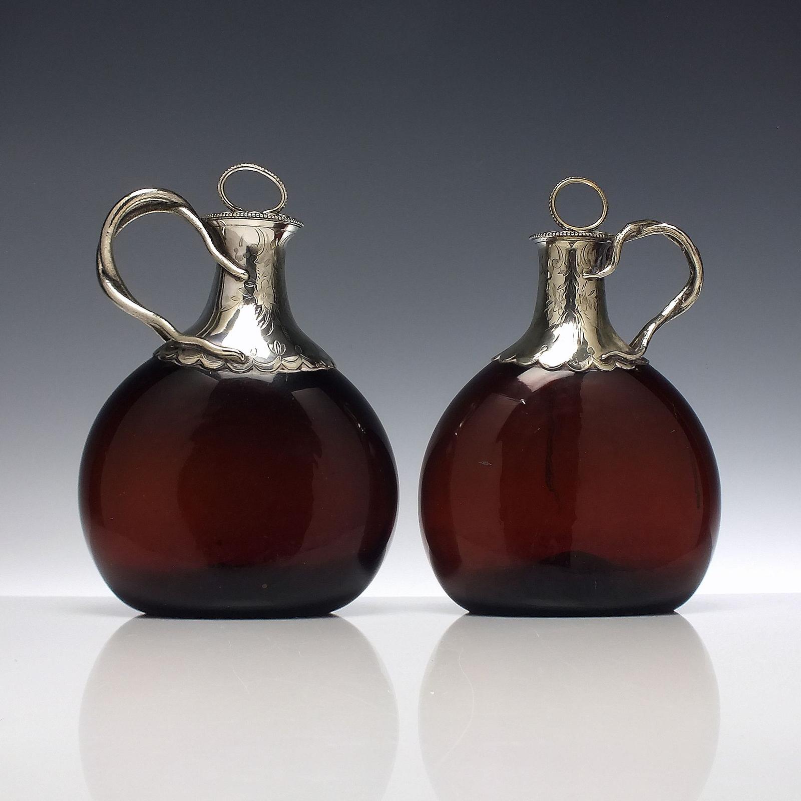 Pair Victorian Whisky Glass Spirit Decanters C1850