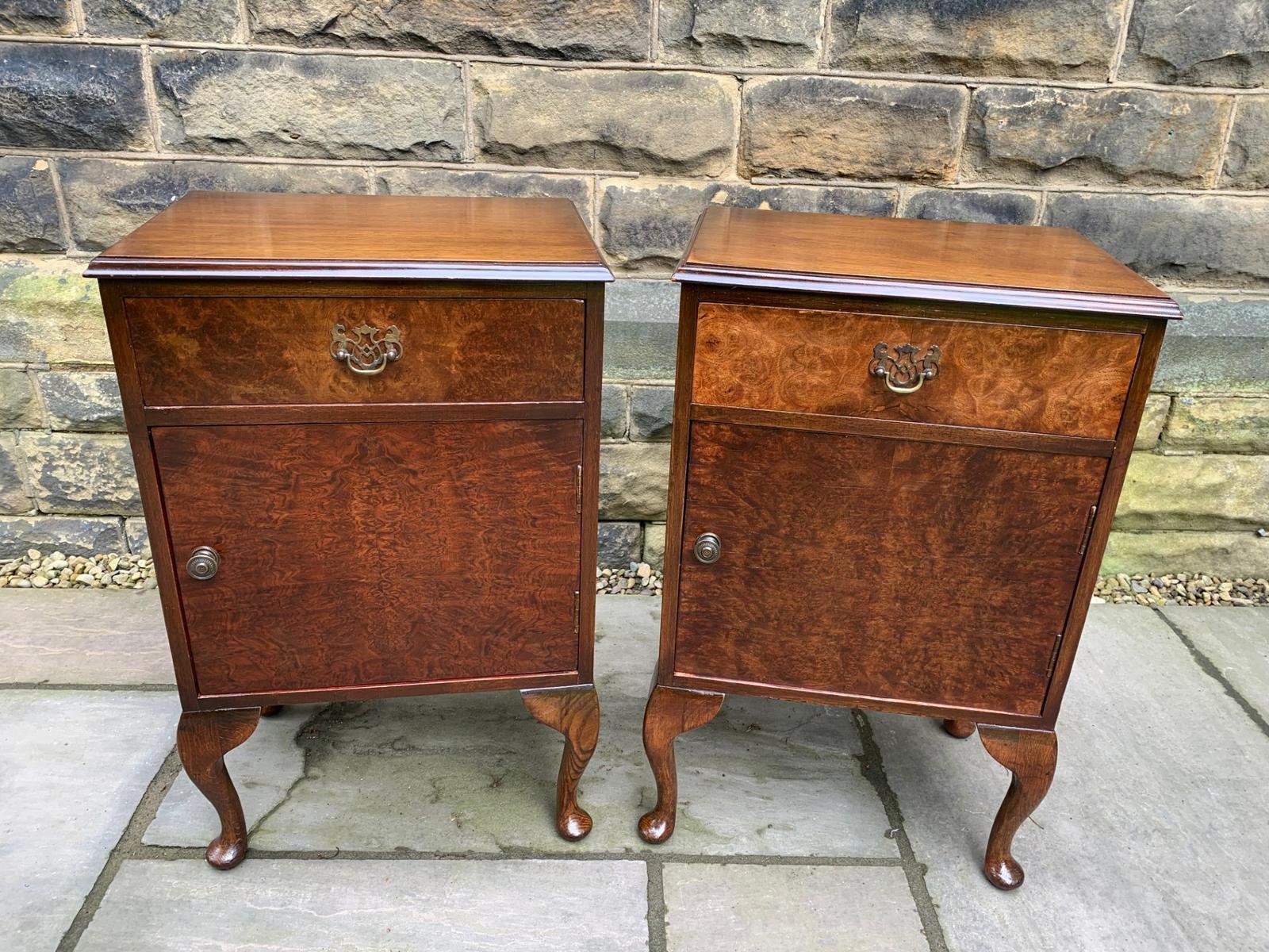 Pair Walnut & Burr Walnut Bedside Cabinets Tables