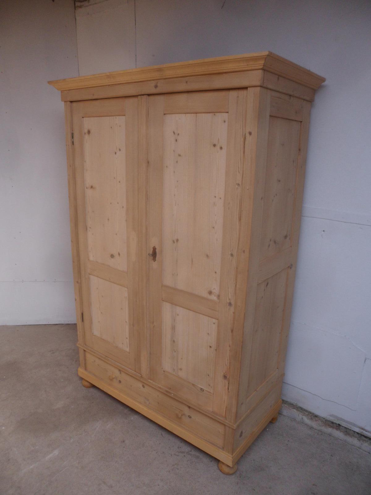 Panelled Antique Pine 2 Door 1 Drawer Knockdown Wardrobe to wax / paint