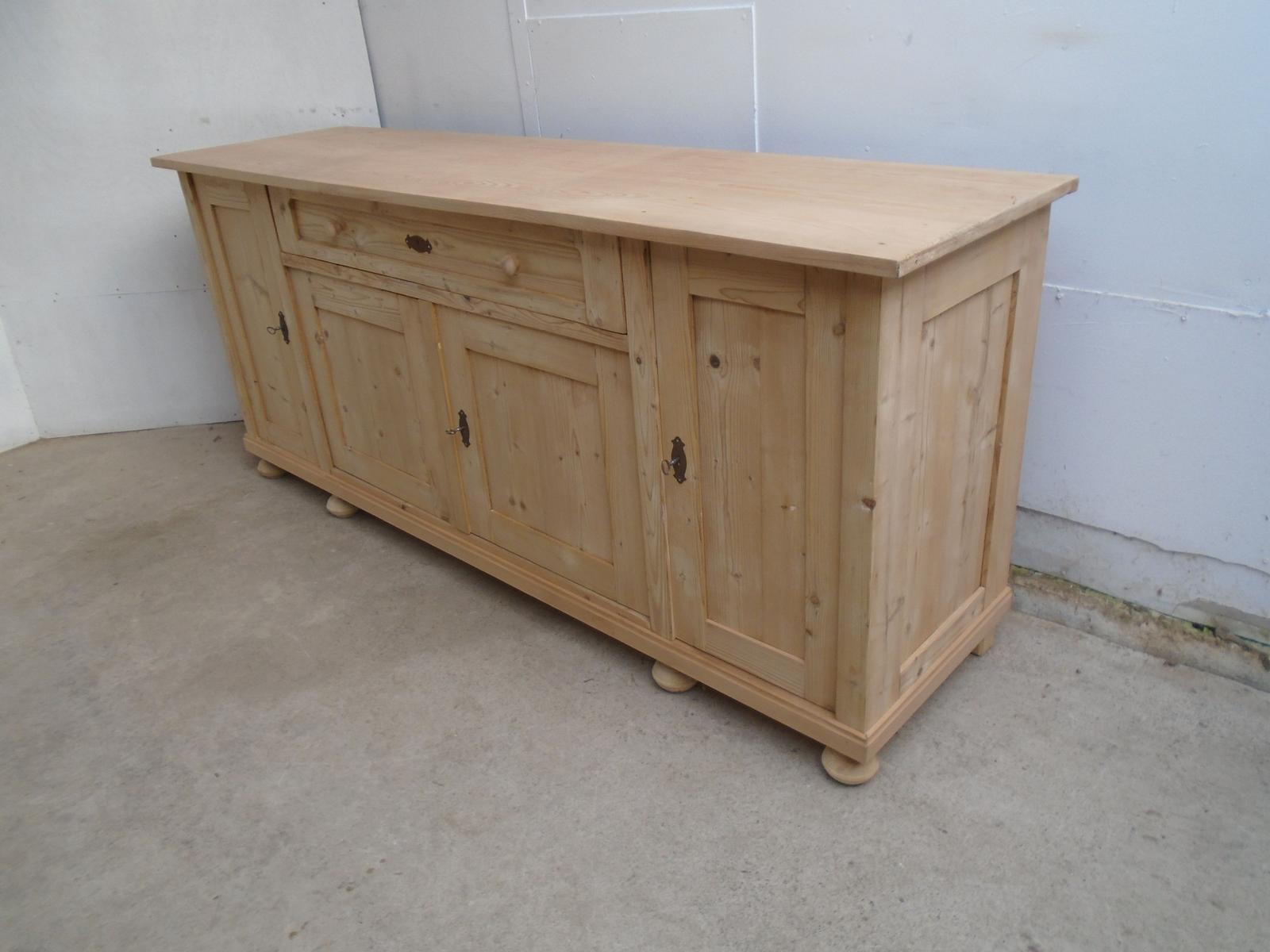 Panelled Antique Pine 4 Door Kitchen Dresser Base / TV Stand to wax / paint