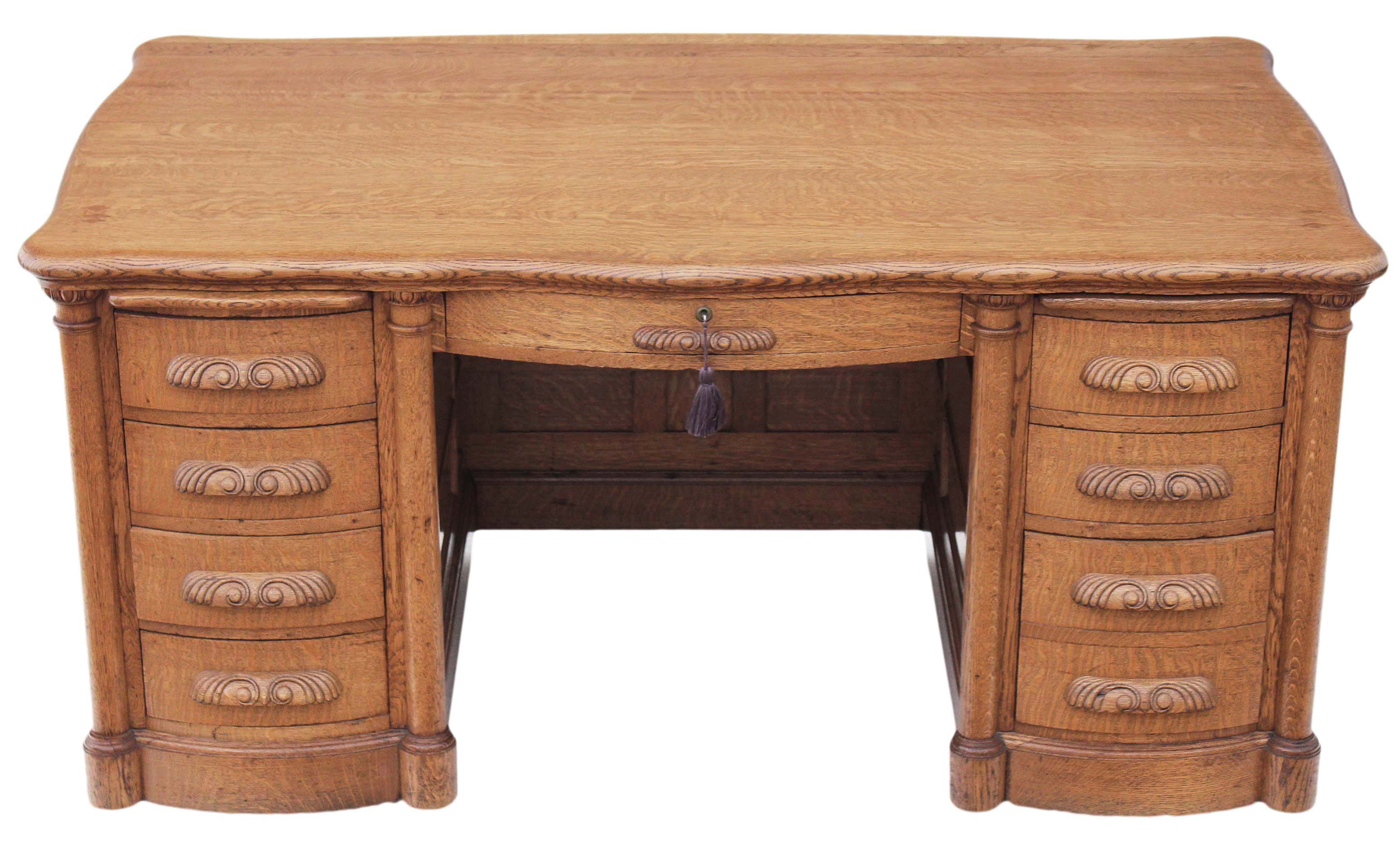 Panelled Golden Oak Twin Pedestal Desk Partner's c.1920 (1 of 1)