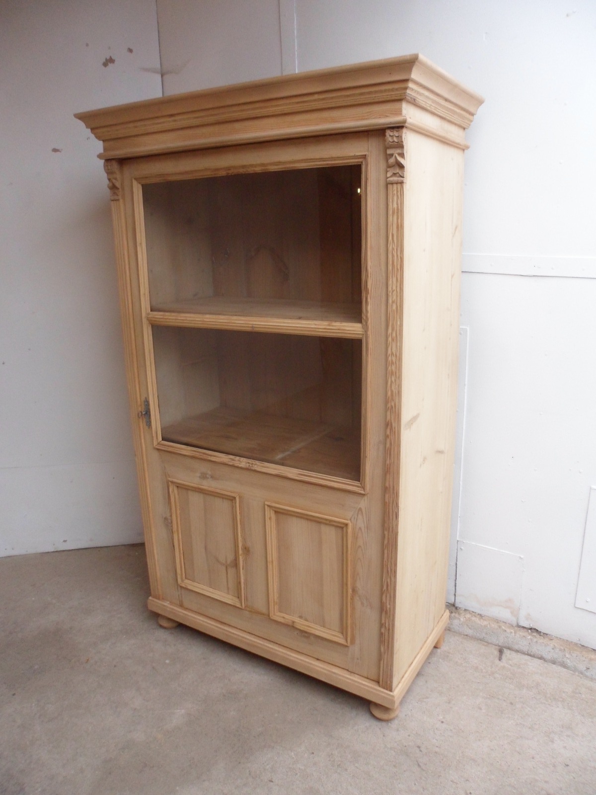 Panelled Old Pine Display Cabinet to wax / paint