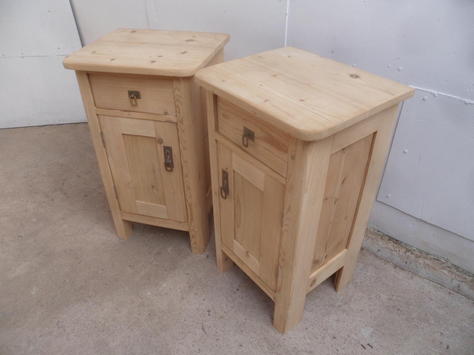 Panelled Small Pair of Victorian Antique Pine Bedside Cabinets to wax / paint