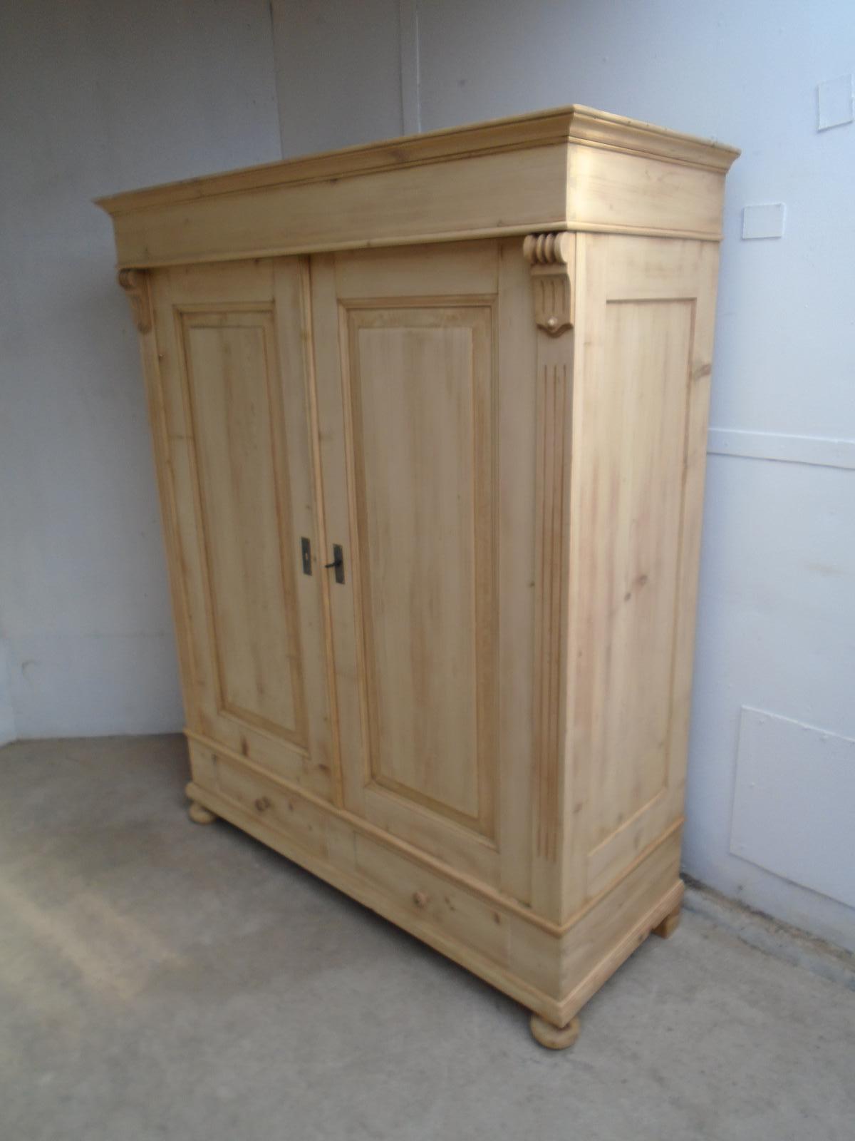 Panelled Victorian Antique Pine 2 Door Knockdown Wardrobe to wax / paint