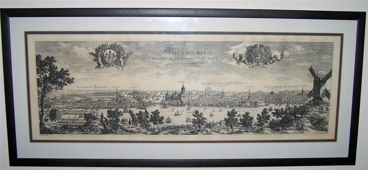 Panoramic Copper Engraving of Stockholm, Sweden c.1750 (1 of 1)
