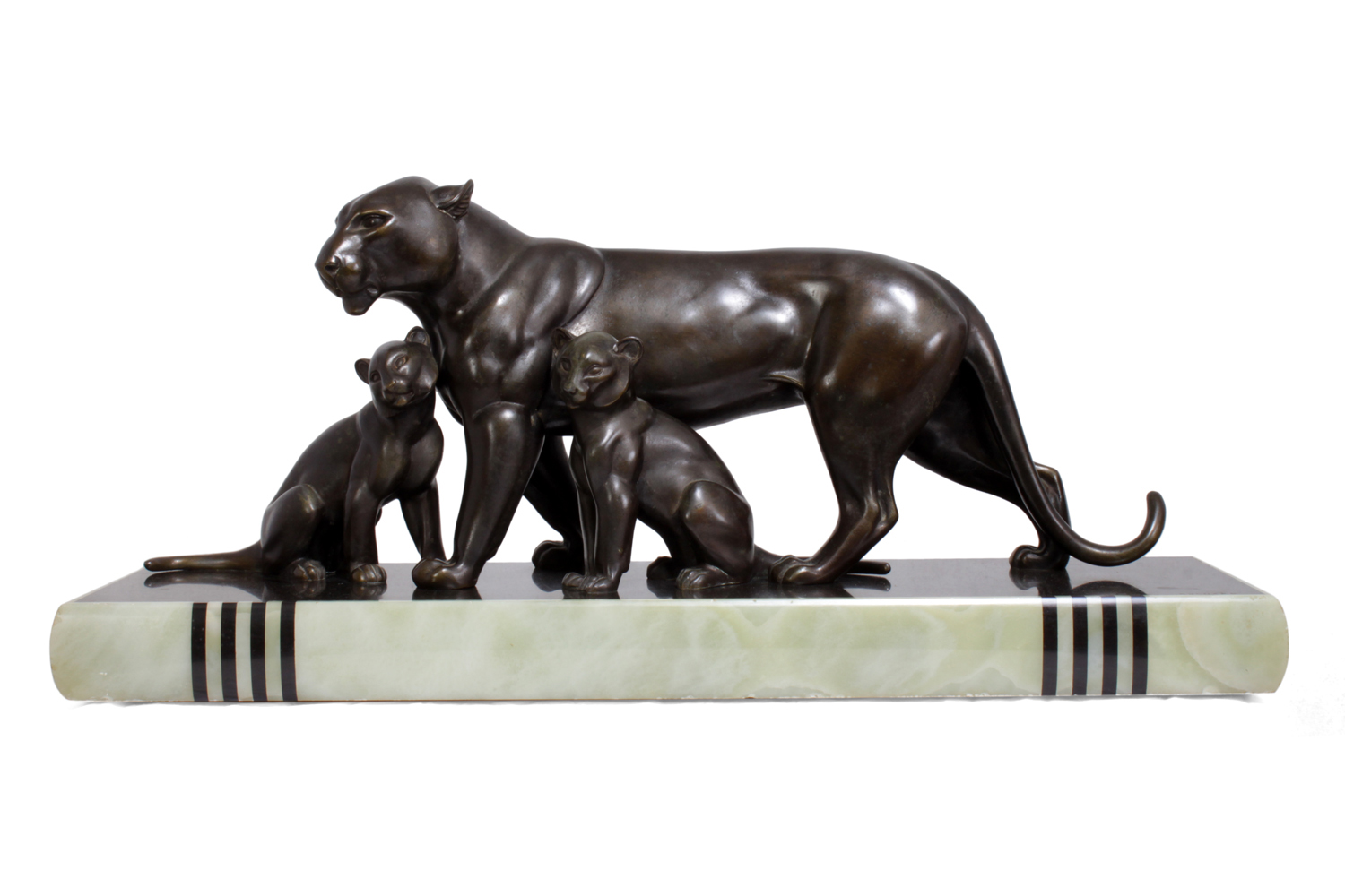 Panther with Her Cubs Patinated Bronze Group by Rochard C1920