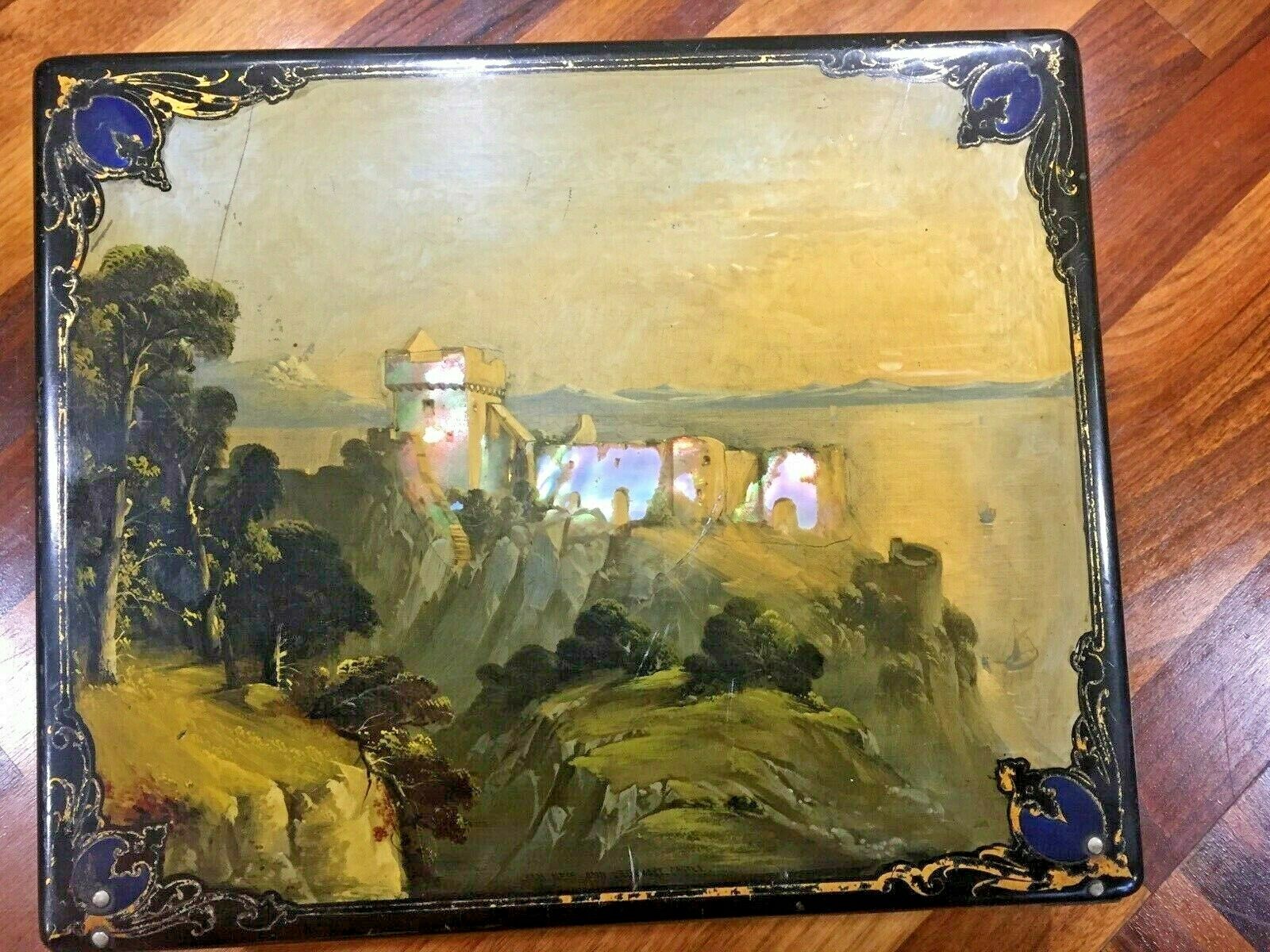 Papier Mache Writing Slope Mop Inlay Loch Ness Scene Jennens & Bettridge c.1840