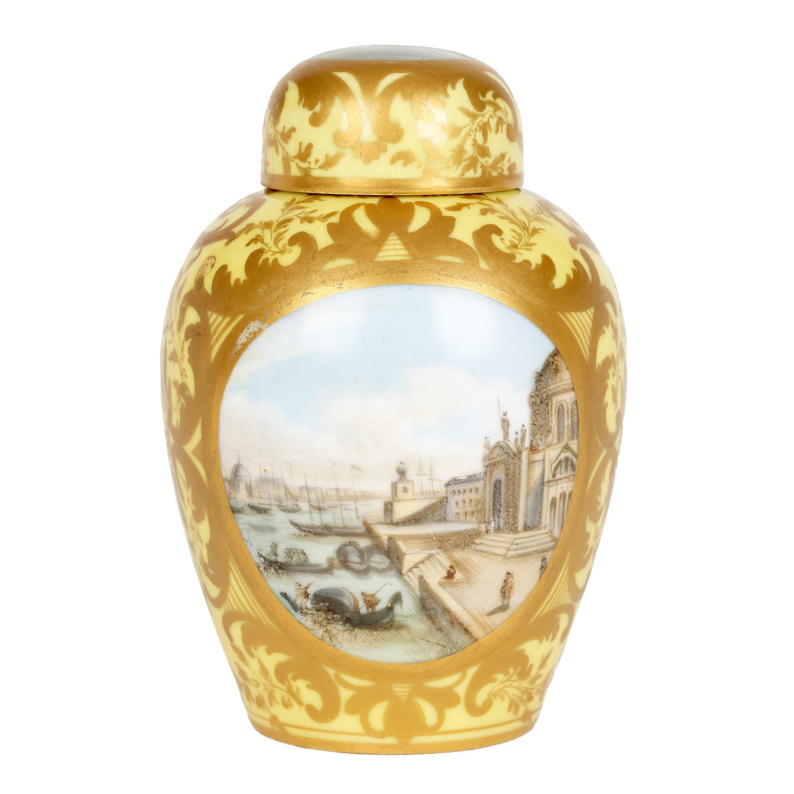 Paris Porcelain Lidded Tea Caddy with Scenes of Venice
